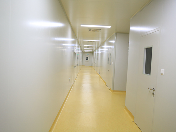 凈化車間采用夾心彩鋼板結(jié)構(gòu)。安裝時,墻面采用企口型,而吊頂采用普通型彩鋼板,使用新型“單、雙”密封的夾心彩鋼板配套鋁型材。緊固件及管線在板材內(nèi)暗裝,這種方法使廠房內(nèi)壁及吊頂看不到螺絲和鉚釘,同時使門窗密閉程度提高,并在保健品凈化車間內(nèi)使用有聯(lián)鎖和紫外燈裝置的傳遞窗(柜)。它能保持室內(nèi)正壓穩(wěn)定,防止污染,達(dá)到GMP要求。
